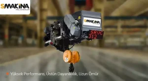 Sağladığı Avantajlar Elektrikli halatlı vinçle ilgili en temel fayda, vinçlerin her bir hareketinin inverter ve çift hız kontrollü olmasıdır. Bu özelliği ile sistem yavaşlama ve hızlanması elektronik olarak tamamlanmaktadır. Bununla birlikte fren balatalarının ömrü uzun olmaktadır. Konumlandırılmış kompakt makara teknolojisiyle makine boyutlarını büyütmeden daha fazla donanım yapabilme imkanı sunmaktadır. En büyük kaldırma yüksekliğine kolayca erişim imkanı, 2 kata yakın çapta tambur ile daha kısa mesafe de daha fazla halat sarımıyla gerçekleştirilmektedir. İndirme sırasında kullanılmayan elektrik şebekeye geri iade edilerek %25 ila %40 oranlarında enerji tasarrufu sağlanmaktadır. Böylelikle hem bütçenize hem de doğaya bir dosttur. (Opsiyonel) Elektrikli halatlı vinçler, bir kaldırma esnasında rakip sistemlere nazaran, mutlak olarak dik indirme ve kaldırma işlemleri gerçekleştirirler. Elektrikli halatlı vinçler, çok daha küçük boyutlarıyla, sağlamlıktan ve kaliteden ödün vermeden, daha büyük bir çalışma alanına erişir. Konvansiyonel sistemlere göre, tambur üzerine sarılı olan halatın küçük bir açıyla kıvrılması sonucu halatın ömrü 4 kata kadar uzamaktadır. Her hangi bir arıza durumunda, Elektrikli halatlı vinçler her parça ana gövdeden ayrılabilir ve yere indirilip kolayca bakımı yapılabilir niteliktedir. Elektrikli halatlı vinçler, hem elektrik sistemi yapısı hem de mekanizması ile bütünüyle “tak, çıkar” mantığı üzerine dizayn edilmiştir. Elektrikli halatlı vinçler, termik, acil durum, faz koruma, PTC, çift kademe ve çift kanca limitli elektro-mekanik aşırı yük koruma teknolojisiyle donatılmıştır ve oldukça güvenli bir sistemdir. Ana kaldırma motorunun, optimal çalışma sıcaklığının stabilize edilmesi için tambur içerisindeki hava kullanılır ve yüksek verimlilik ile soğutulur. Elektrikli halatlı vinçler, ağır şartlarda kullanıma uygun ve uzun yıllarca kullanılabilir olarak tasarlanmıştır. Bu bakımdan hem servis ihtiyacınızı en aza indirir hem de bakım masraflarınızı ciddi oranda düşürür. Standart elektrik sistemlerine sahip olan Elektrikli halatlı vinçler ile vinç kumandasının hatalı kumanda edilmesi önlenmektedir. “ince ayar” olarak adlandırılan start/stoplardaki ani durma ve hızlanmalar engellenmektedir. Ayarlanabilir yavaşlama ve hızlanma eğrilerini kullanılarak kullanıcı hataları minimize edilir. Bununla birlikte hareket eden parçaların bozulması ve yıpranması önlenmektedir. Elektrikli halatlı vinçlerde, servis ihtiyaç tarihlerinin optimize edilmesi ve uzun kullanım ömürlü olması için elektronik denetleme sistemi mevcuttur. Güvenli ve hatasız kullanım için kancanın aşağı ve yukarı limitleri önceden veya sonradan kolaylıkla ayarlanabilir durumdadır. Alt ve üst limitlere yaklaşıldığında çift kademe hızı yavaşlamakta ve durması sağlanmaktadır. Olası bir acil vakada kumanda pendantının hemen altında bulunan acil durum tuşuyla makinedeki enerji alan bütün birimlere elektrik akışı kesilir. Olası bir şebeke elektriği problemi durumlarında ise Elektrikli halatlı vinçlerde bulunan bir sistem sayesinde besleme elektriği otomatik olarak kesilmektedir. Böylelikle elektronik sistemlere zarar gelmesinin önlenmesi sağlanmaktadır. Elektrikli halatlı vinçlerde kumanda voltajı 48 volttur. Her hangi bir nedenle kumandanın zarar görerek izolasyon sorunu oluşturma ihtimaline karşı temas edilen kumanda yüzeyinde düşük voltajlı elektrik gezmektedir. Elektrikli halatlı vinçler çalışma durumunda iken 50Db’nin altında sessiz bir şekilde iş görmektedir. Dayanıklı, güvenilir ve bir alyan anahtarı ile ayarlanabilen aşırı yük switchi ile sağlıklı bir çalışma sunar. Halat kılavuzu, halatın düzgün bir şekilde tambura sarımını sağlar ve operatör hatalarından kaynaklı halat kılavuzu kırılmalarının önüne geçilmesini sağlar. Enerji verimliliği yüksek ve ağır şartlarda kullanıma uygun olan Elektrikli halatlı vinçler, 3000 çıkış devrine sahip kaldırma motorlarıyla donatılmıştır. Yürüyüş sistemlerinin tümünün tekerlek göbeklerinden tahrikli olması, eskime ve arıza yapma durumlarını en aza indirmektedir.